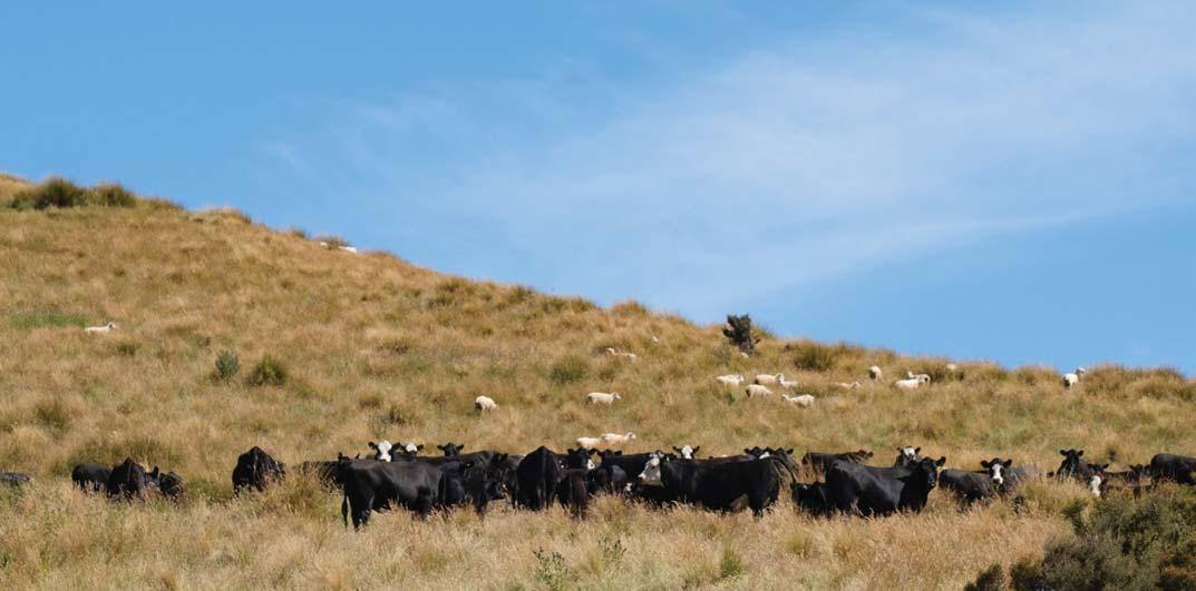 which forms the headwaters of the Waipahi River. Our largest wetland block is fenced, regenerating manuka and tussock. We are progressively fencing all waterways and built a stock water system to supply the whole farm, which encourages the sheep and cattle to walk across the paddock to a trough, rather than drinking out of the creek, meaning our waterways are better looked after and the stock healthier. Parts of the farm have plenty of native tussock, which is great value, marvellous for shelter for stock after lambing or pre-lamb shearing,” says Michael.