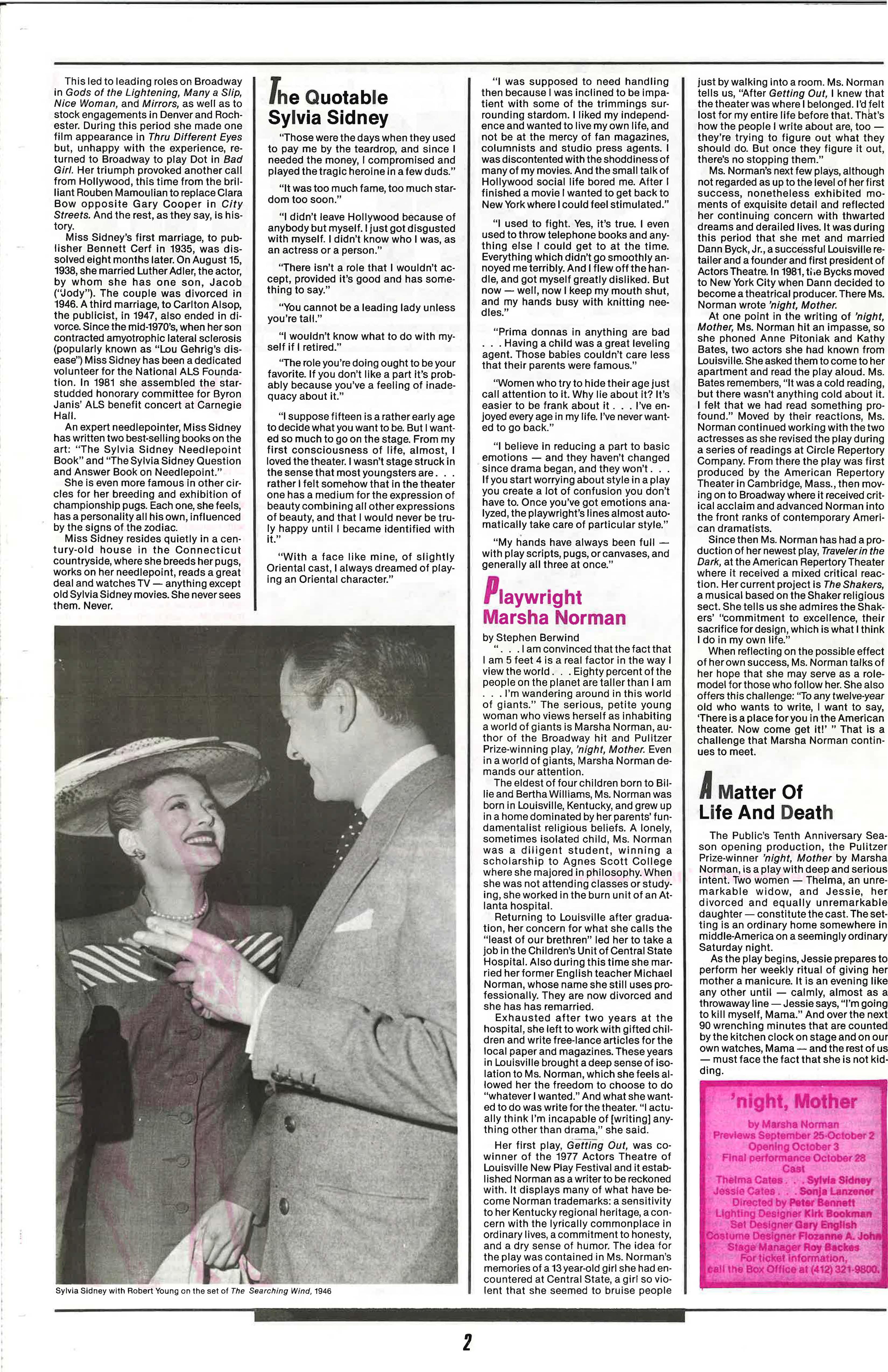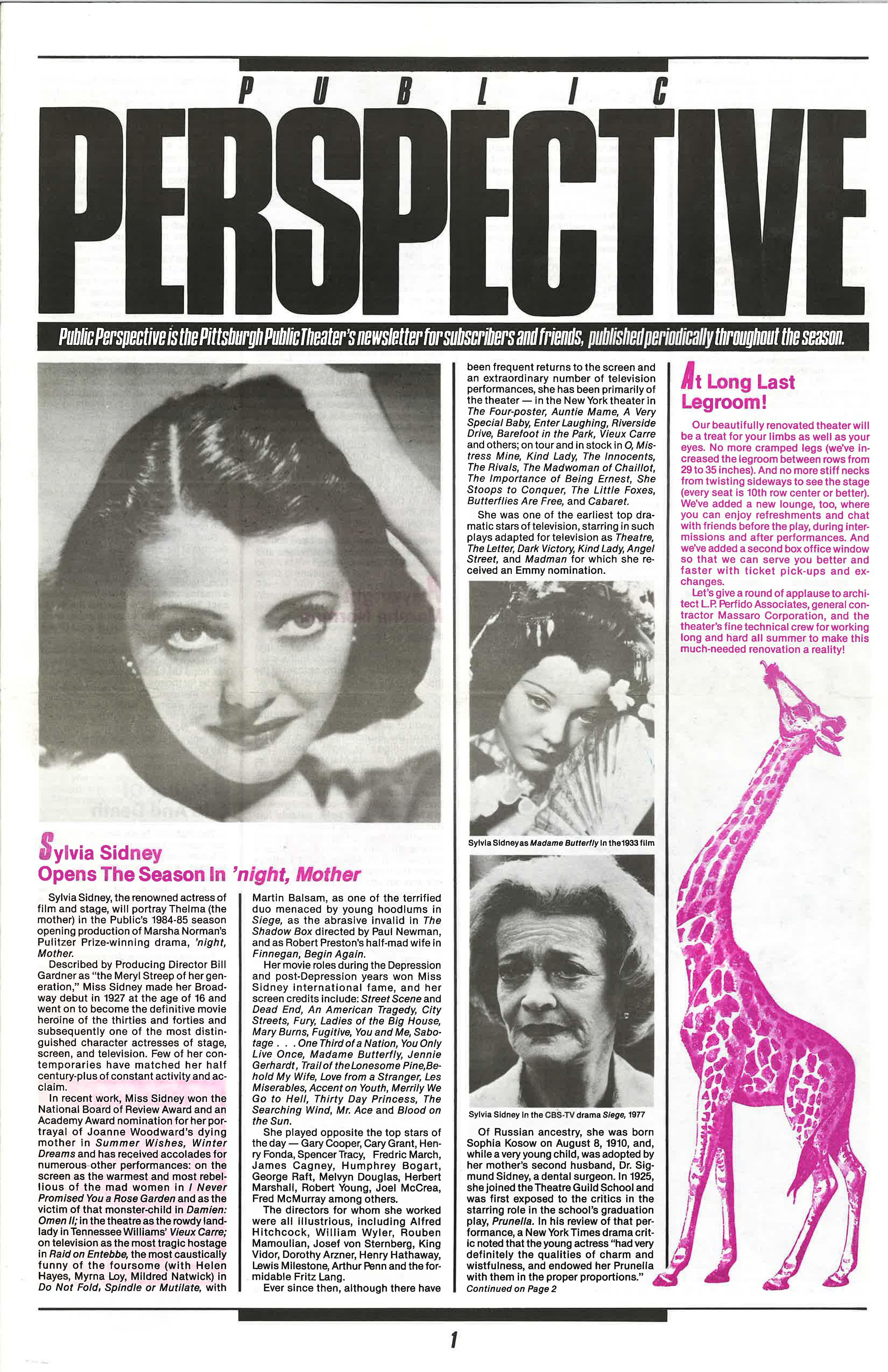 Sylvia Sidney, the renowned actress of film and stage, will portray Thelma (the mother) in the Public's 1984-85 season opening production of Marsha Norman's Pulitzer Prize-winning drama, 'night, Mother.