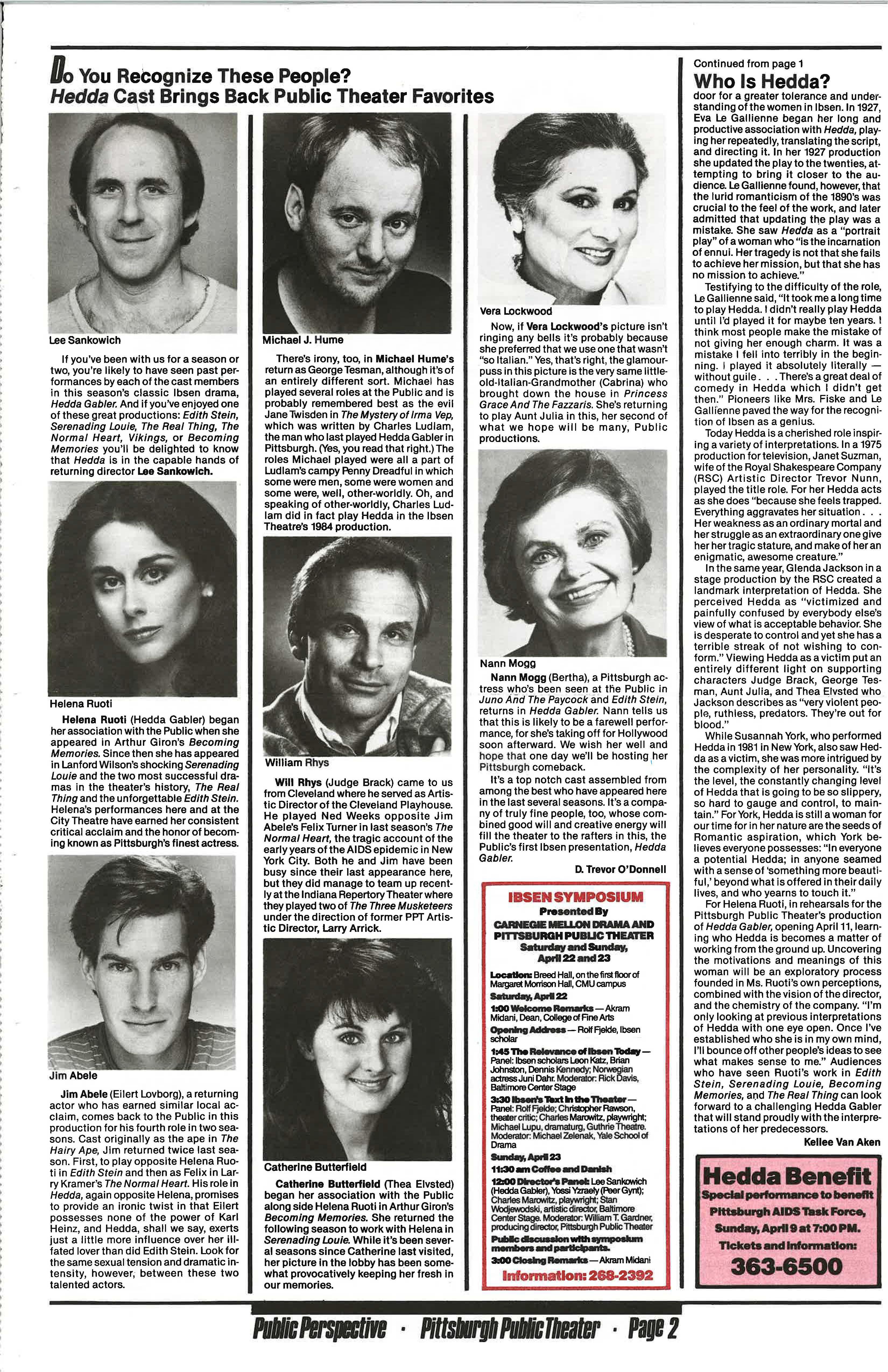 Nann Mogg (Bertha), a Pittsburgh actress who's been seen at tlie Public in Juno And The Paycock and Edith Stein, returns in Hedda Gabler. Nann tells us that this is likely to be a farewell performance, for she's taking off for Hollywood soon afterward. We wish her well and hope that one day we'll be hosting her Pi ttsburgh comeback. 1