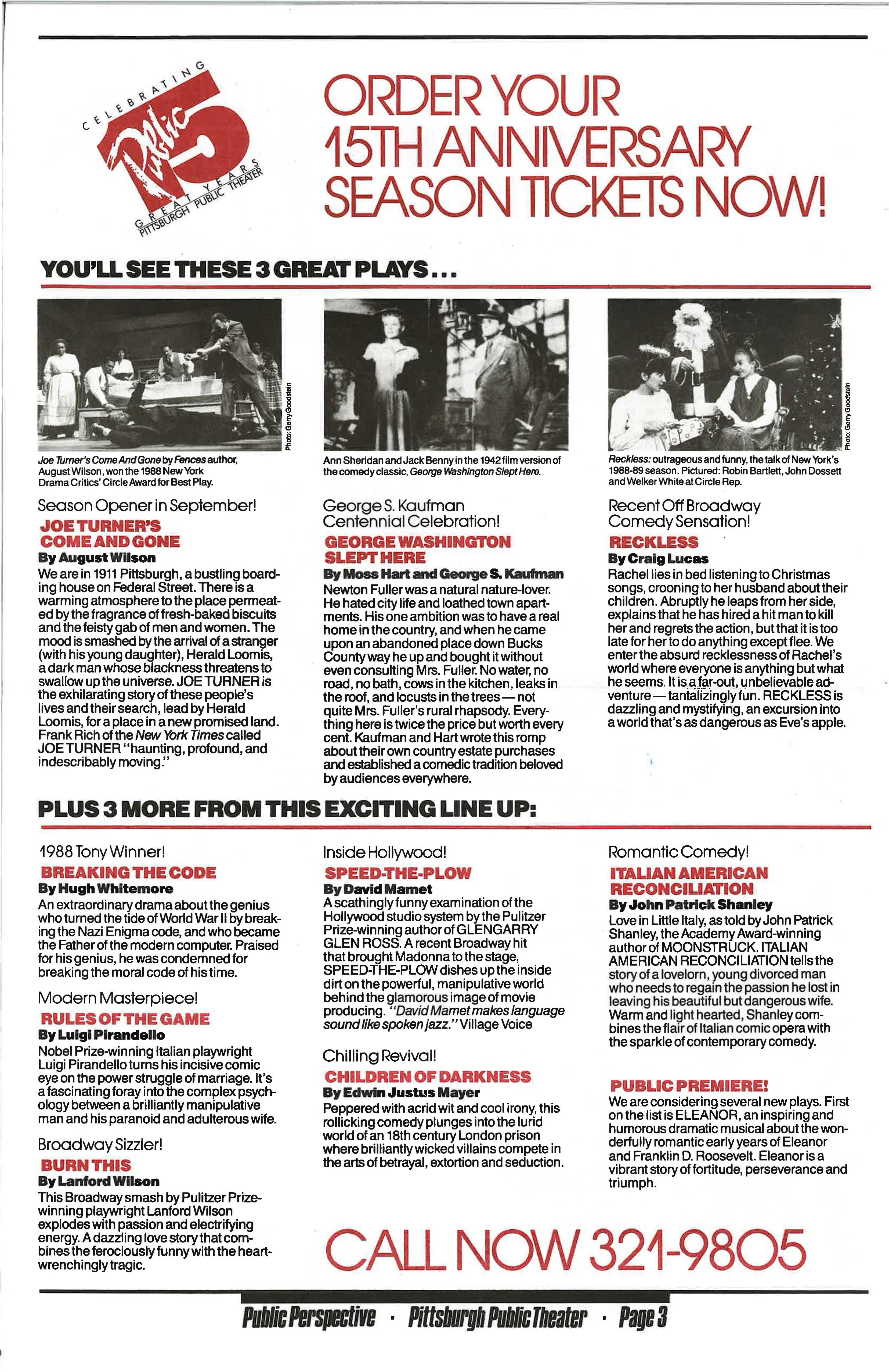 2. By mail. Enclose payment, note performance desired, include name, address, telephone number and a stamped self-addressed envelope. Mail to: Pittsburgh Public Theater Box Office, Allegheny Square, Pittsburgh, PA 15212-5362.