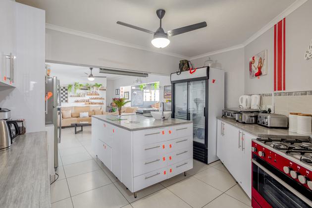 This stylish, fully furnished 5 bedroom, 3 bathroom home is located in the very desirable suburb of Uvongo Beach, within walking distance of the very popular Liliecrona Boulevard and the sought-after but less busy Lucien Swimming Beach.