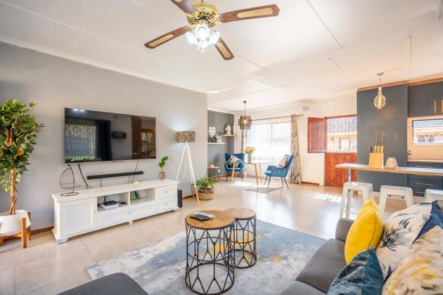 This property boasts a main house plus THREE separate cottages, a swimming pool, a thatched lapa and braai area. The main house has 3 bedrooms, 3 5 bathrooms and a study/office space