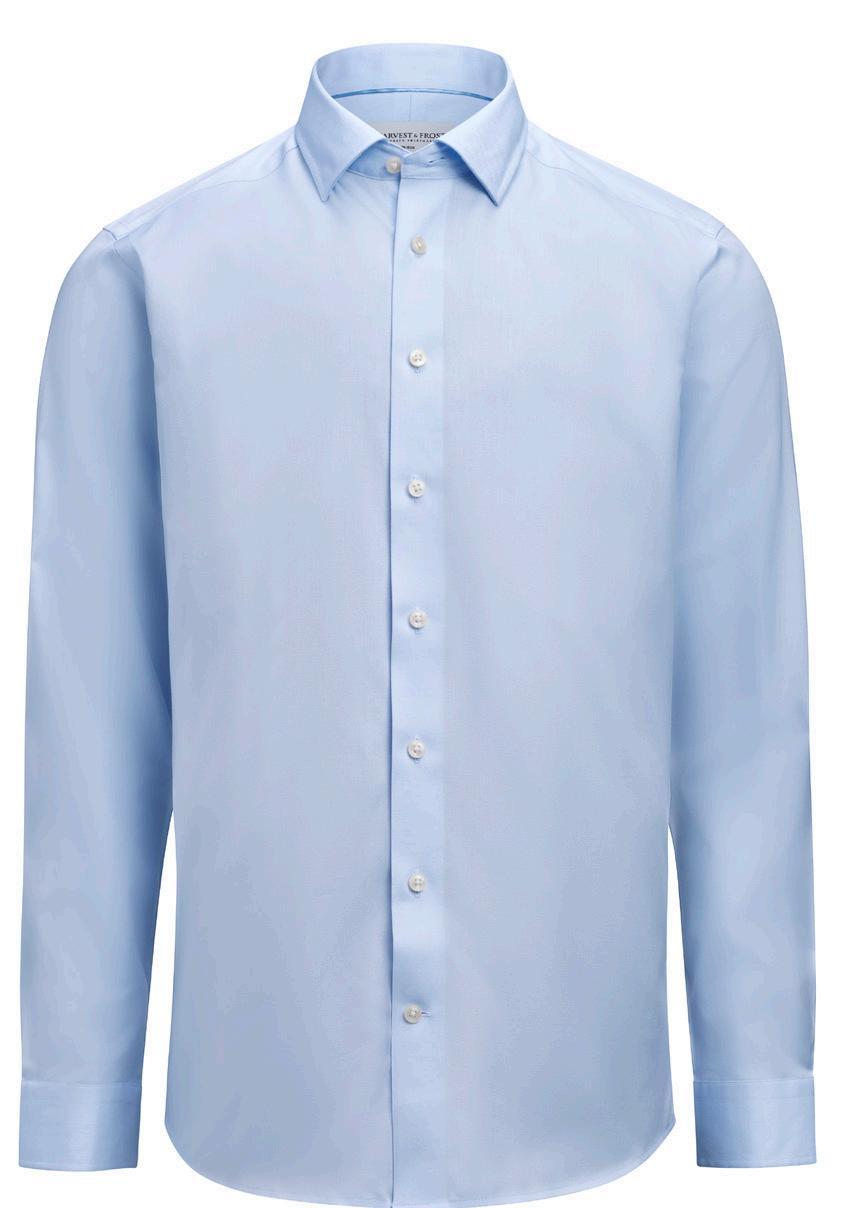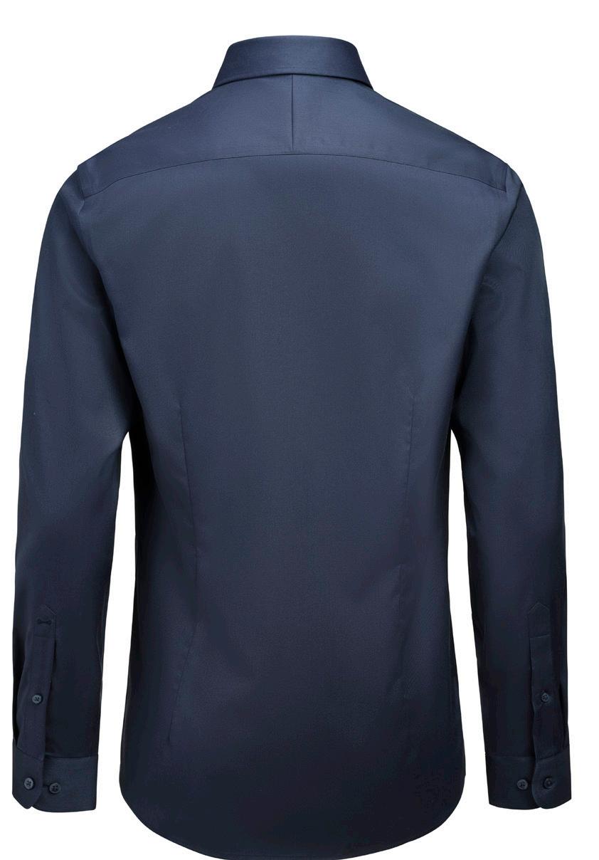 Skjult button-down-krage, ton-i-ton detaljer, delt skulderparti og teipede sømmer. Materialet er en superkomfortabel blanding av 80 % bomull, 16 % lyocell og 4 % elastan.