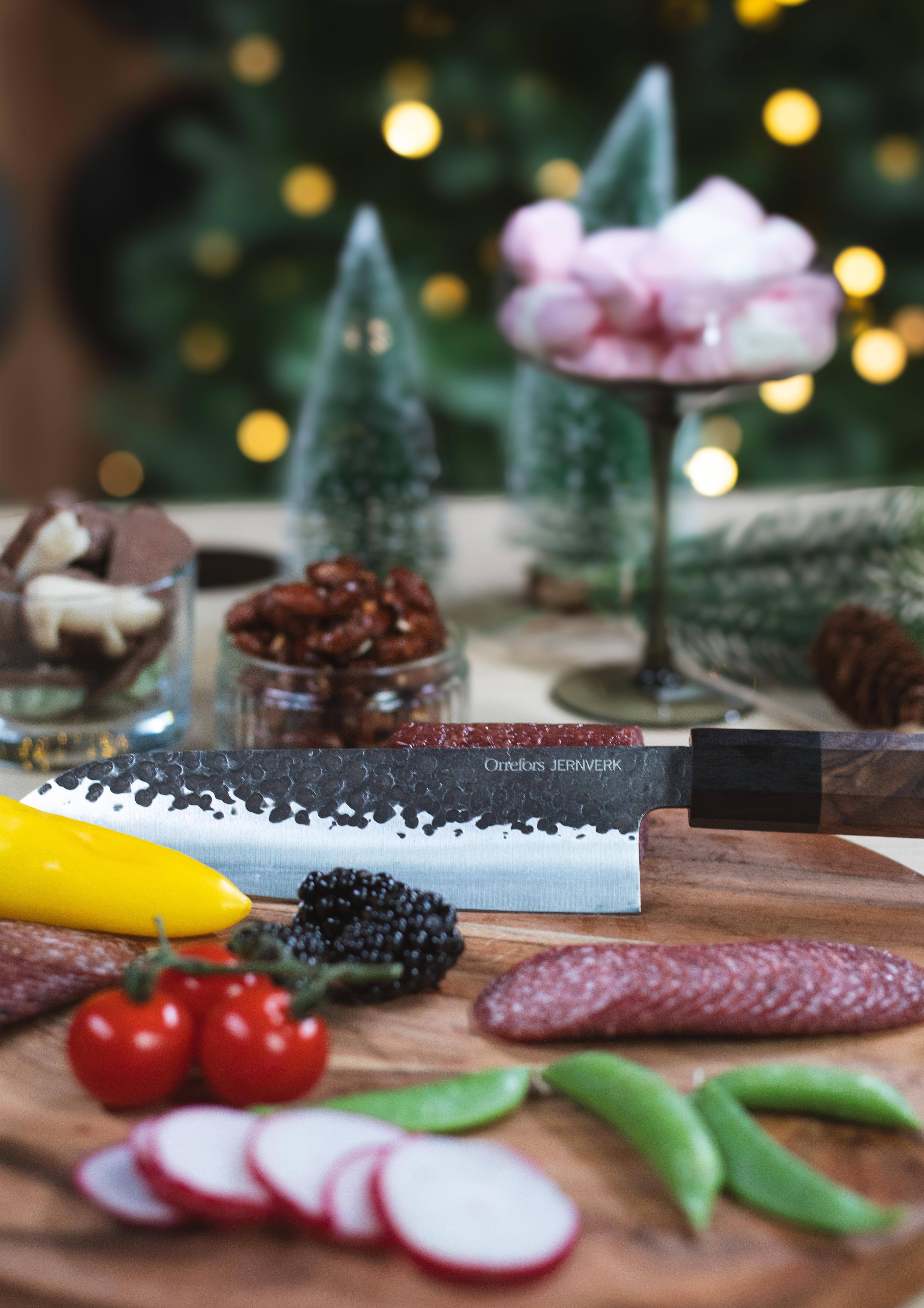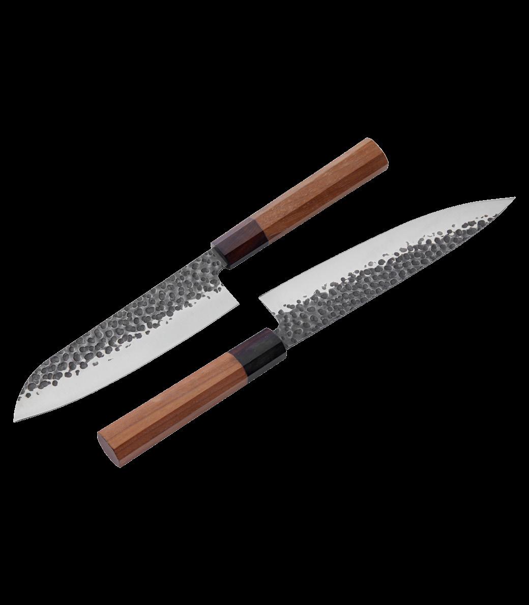 JAPANSK KNIVSETT HAMRET RUSTFRITT STÅL TREHÅNDTAK