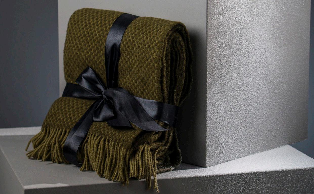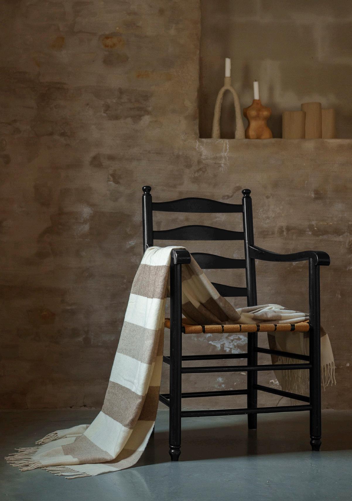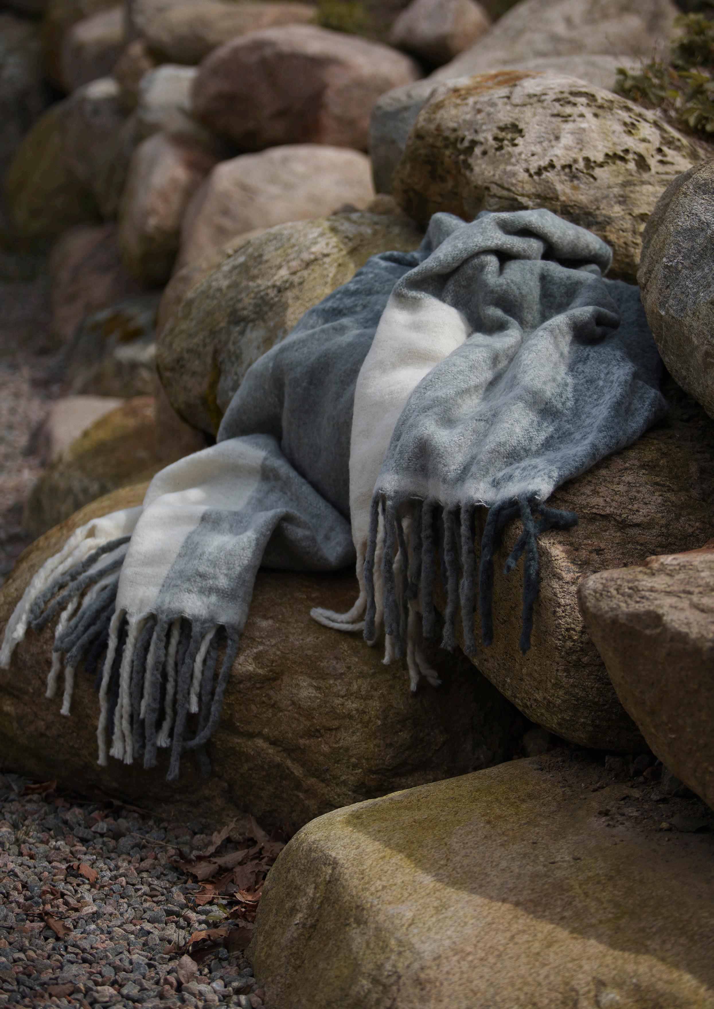 Dette pleddet er både koselig og stilig. Laget av høykvalitets ull og akryl, med store, tykke frynser som gir det et ekstra elegant preg. Perfekt å svøpe seg i på en kald vinterkveld.
