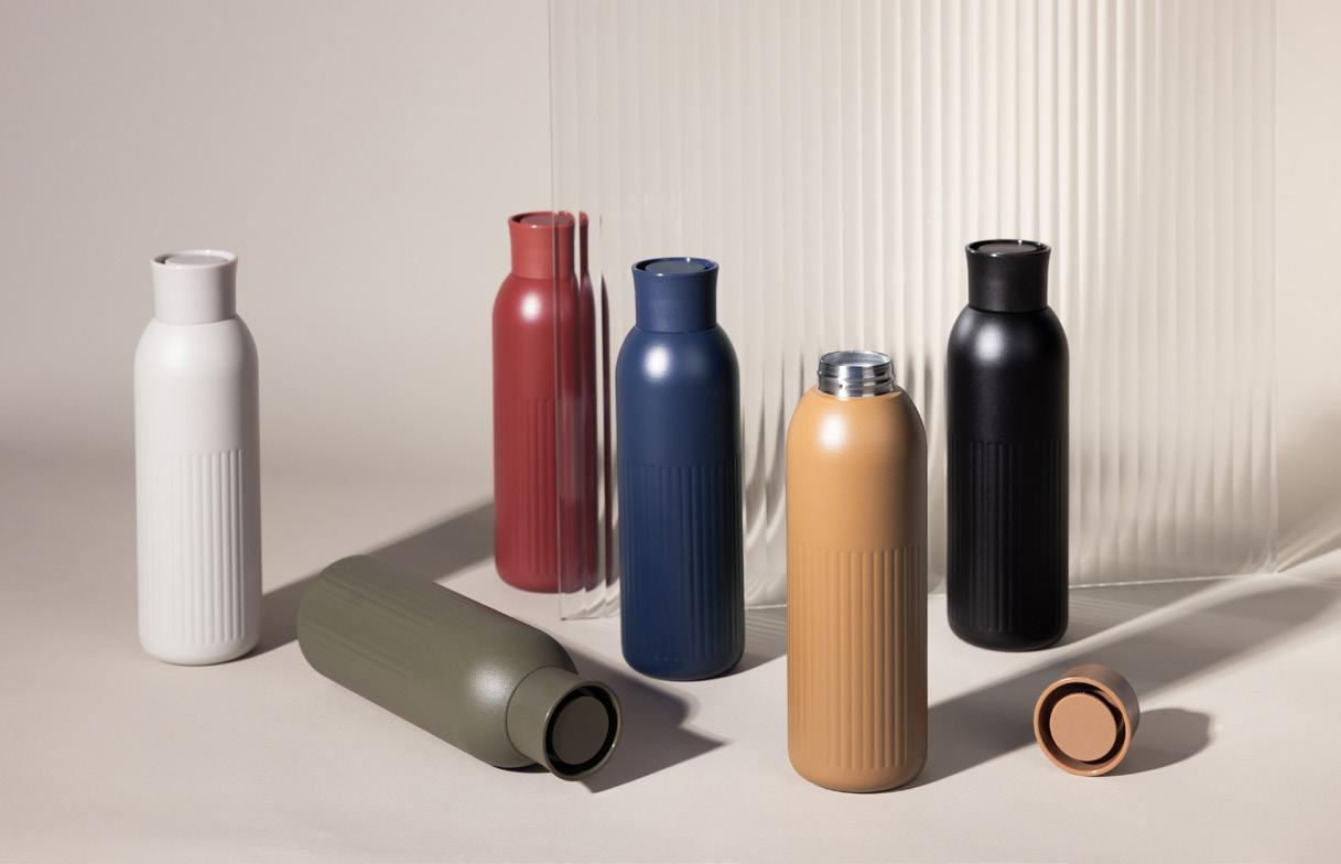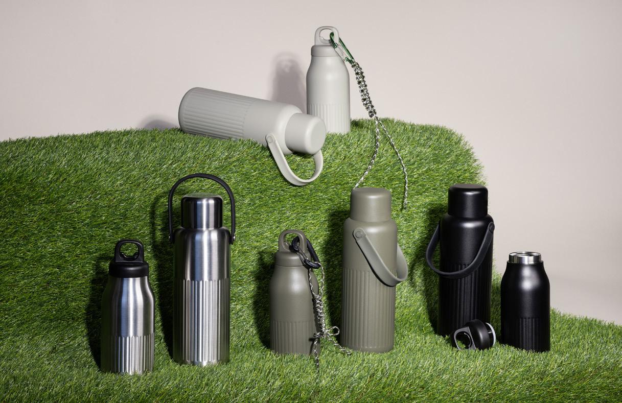 En serie produkter fra Sagaform, laget av resirkulert stål som både er lekkasjesikre og oppvaskmaskinsikre.