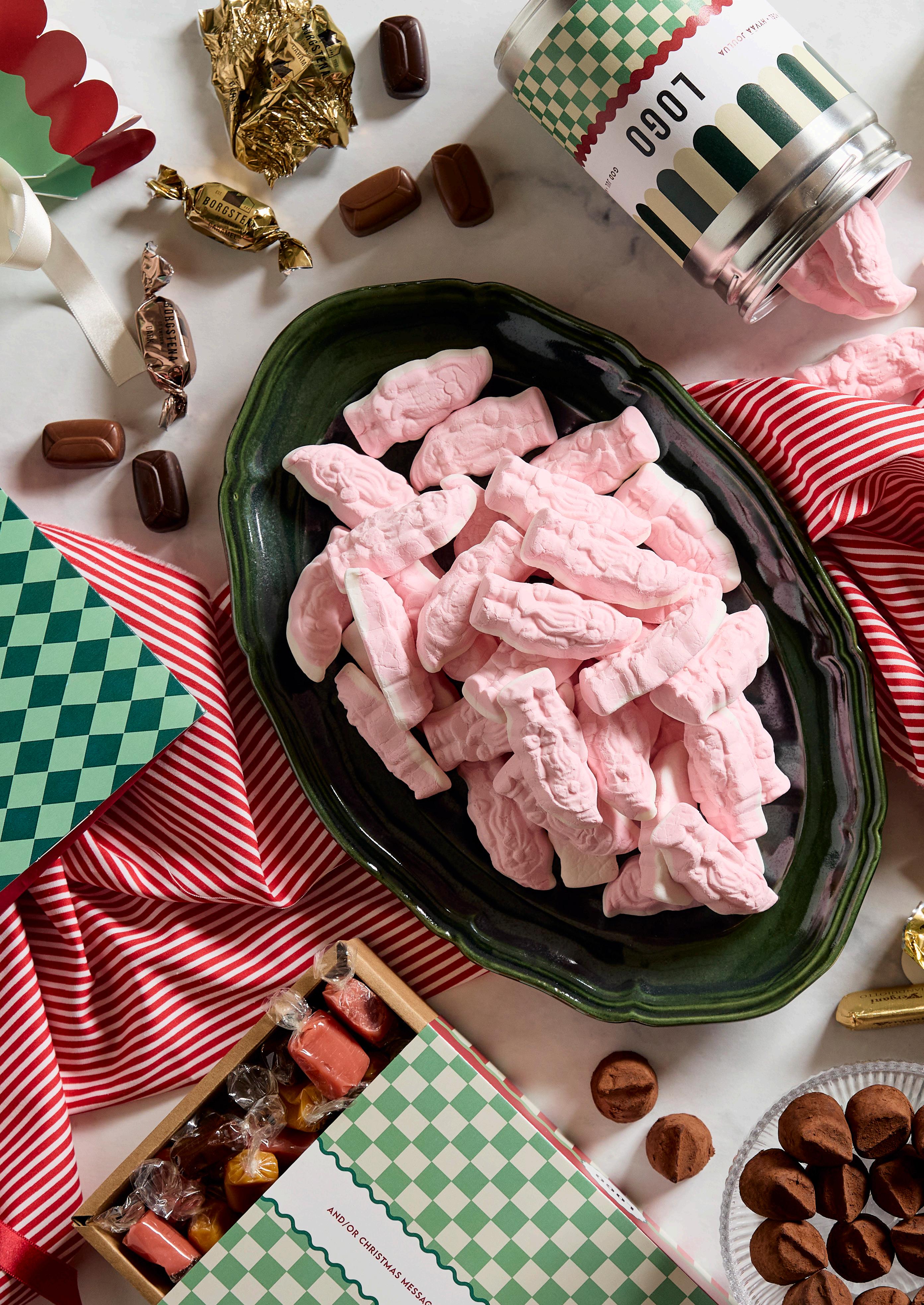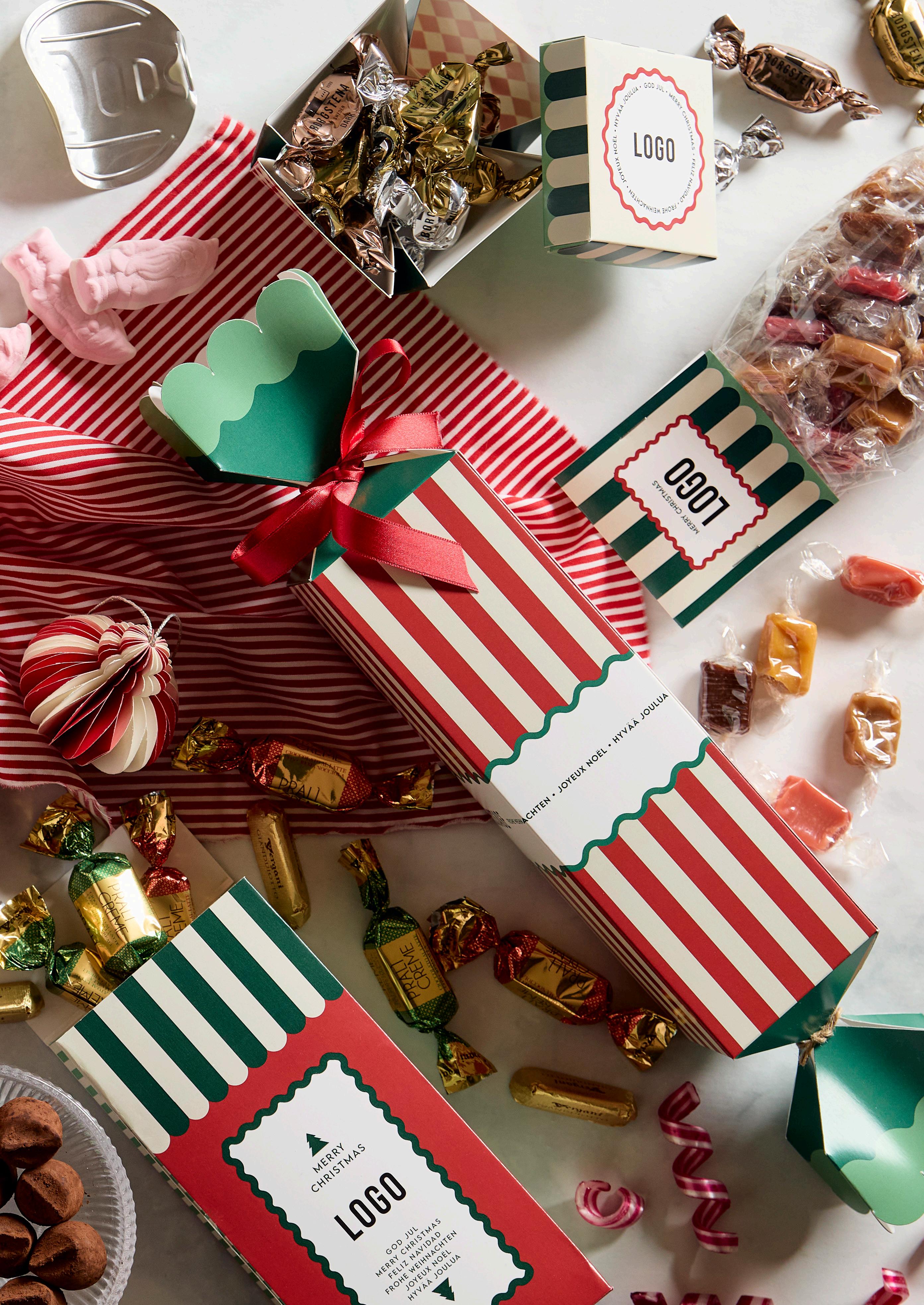 En eske med godt og blandet, for deg som vil ha litt av hvert. Her får du både deilige safrankarameller og en superfrisk gløgg.