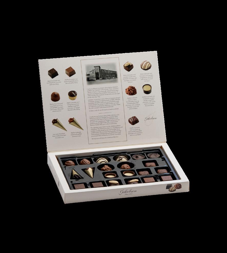 Luksuriøse sjokoladepraliner i elegant emballasje – en fristende godbit som passer for alle, enten som snacks til kaffen eller som en liten nytelse på kontoret.