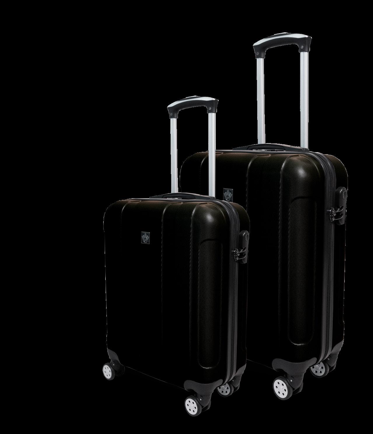 Laget av slitesterk ABS-plast. Lav vekt. Innredningen består av midtskille og pakkebånd. Fire doble hjul. Justerbart teleskophåndtak. Godkjent kombinasjonslås.