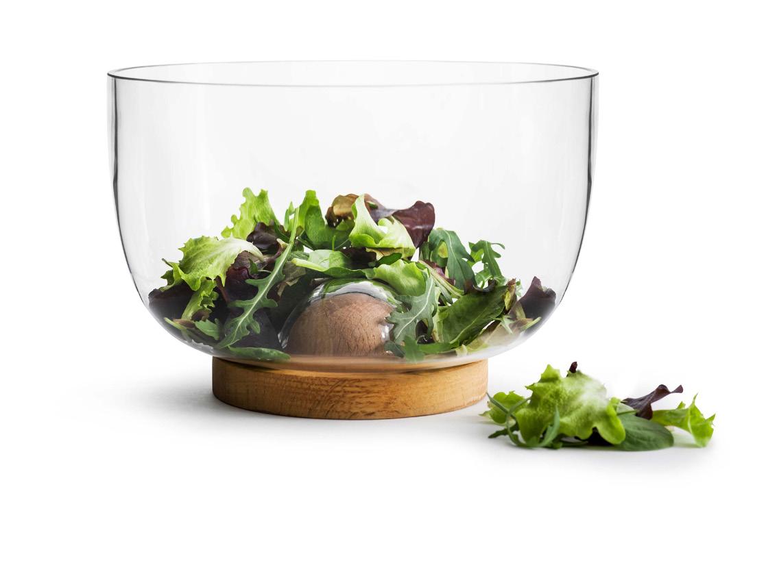 NATURE SERVERINGSSKÅL Ø 23 CM MUNNBLÅST GLASS + EIKBUNN