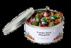 Innhold: Innpakkede sjokoladebiter 750 g Pakkes i metallboks/m lokk 185x92 mm