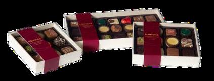 Innhold: Belgiskkonfektsjokolade med fylte sjokoladebiter 800 g Leveres i sølv og gulleske assortert