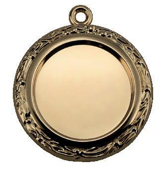 Medalje Ø: 34 mm. Gull, sølv eller bronsefinish. Plass til dekor Ø: 25 mm