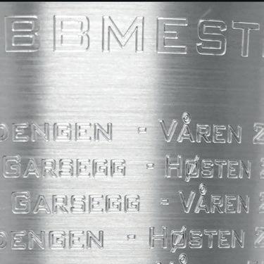 93% rent tinn, 7% antimon og vismut. Vi graverer rett på pokalene.