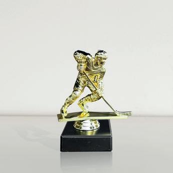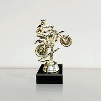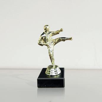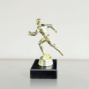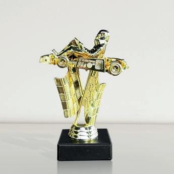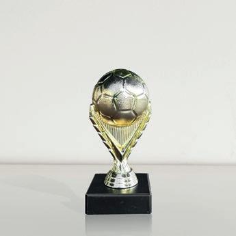 Pokal i metall og kunststoff med sokkel i kunststoff.