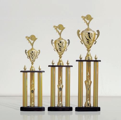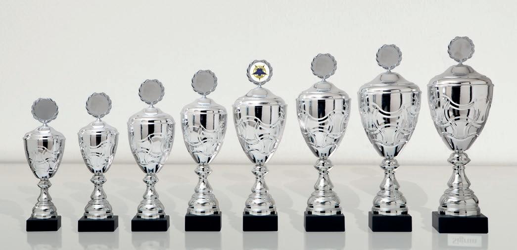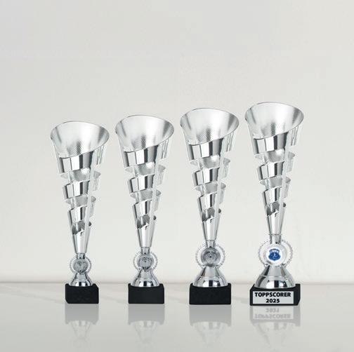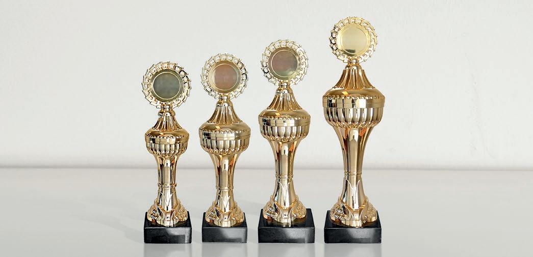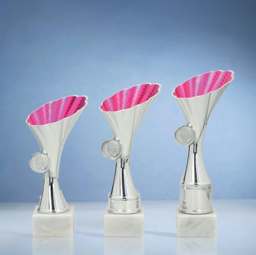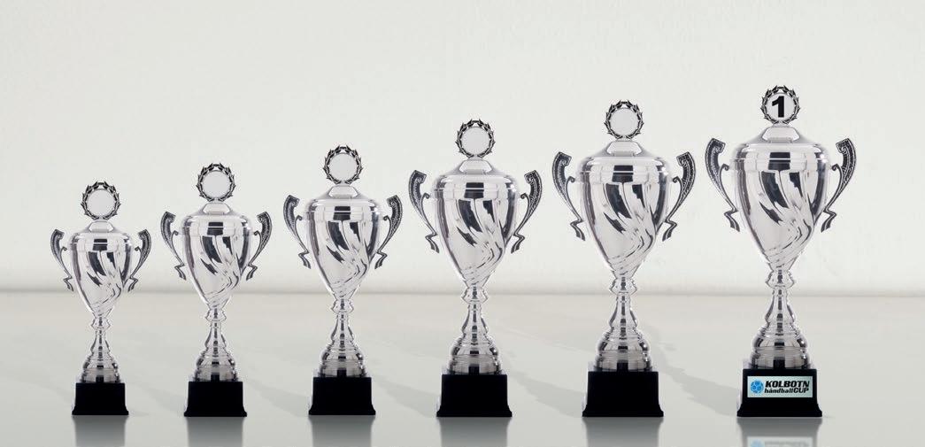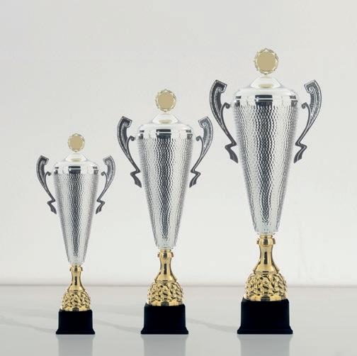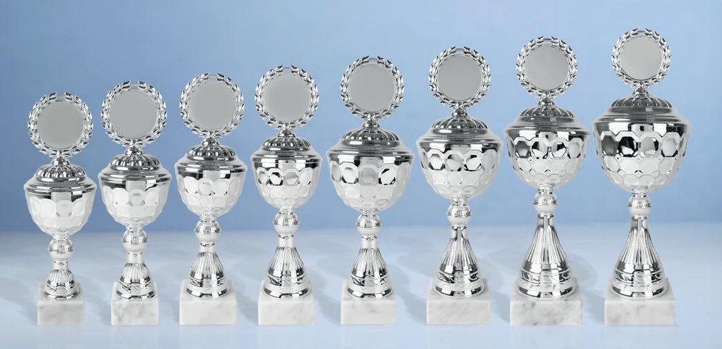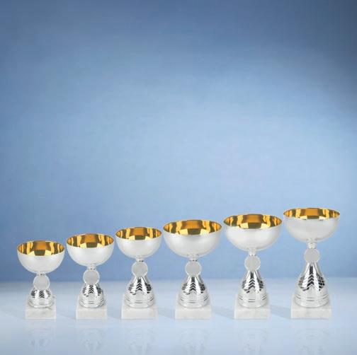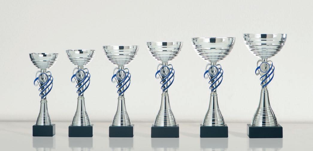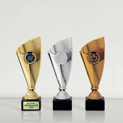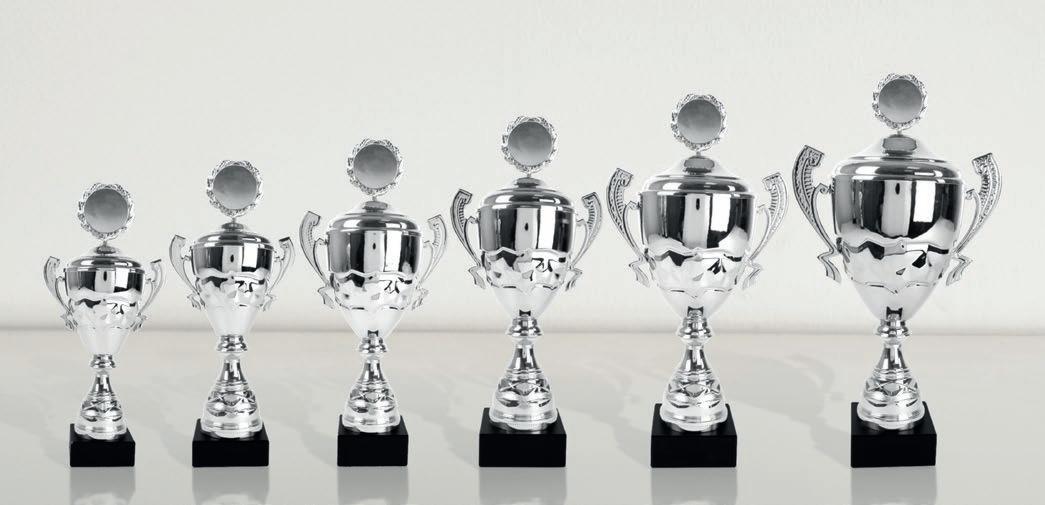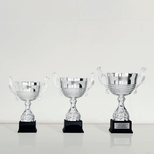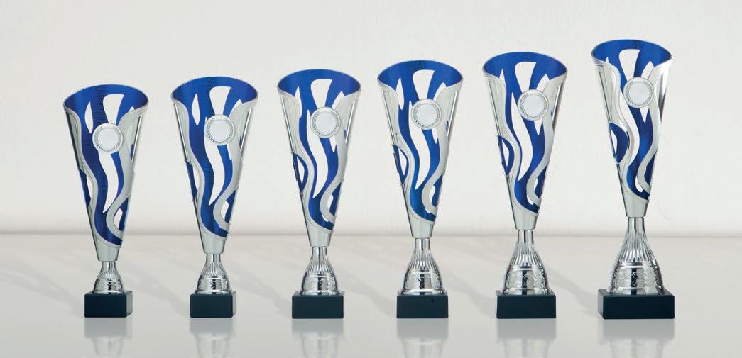 Pokalserie i kunststoff. Plass til sentermerke (Ø:25 mm) og/eller etikett eller skilt på sokkel.