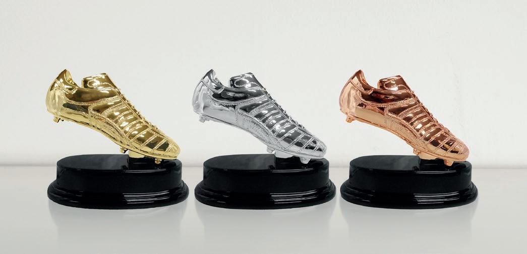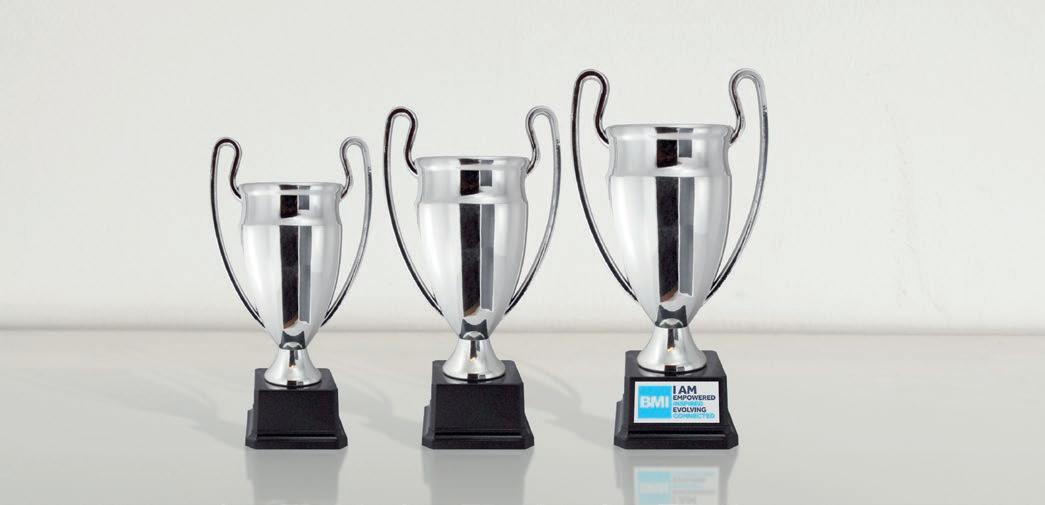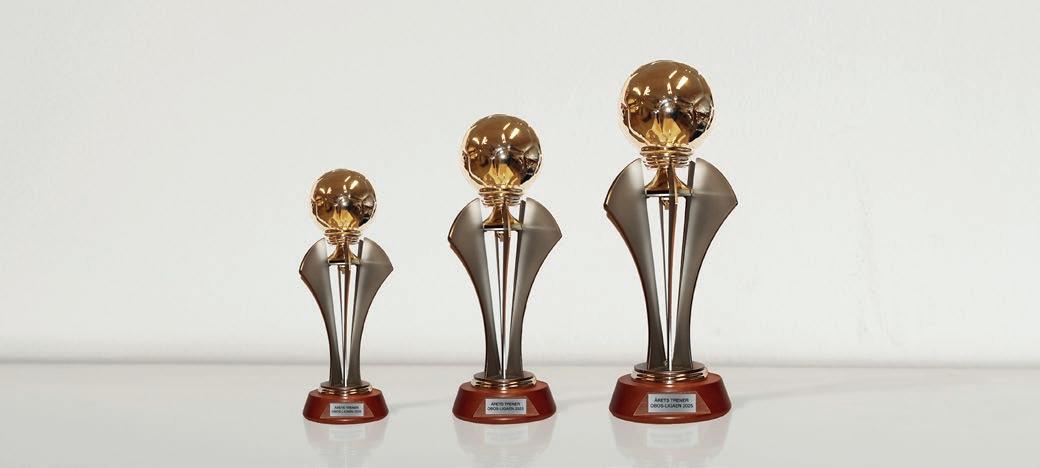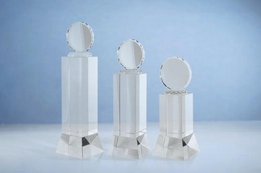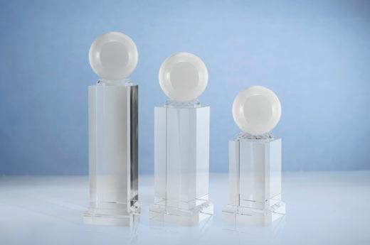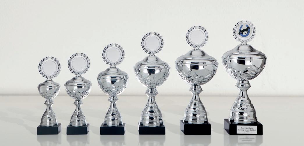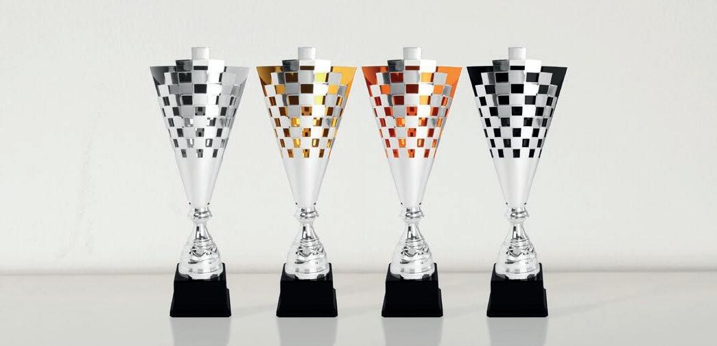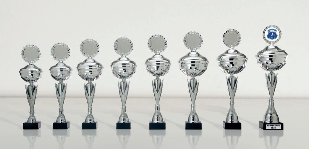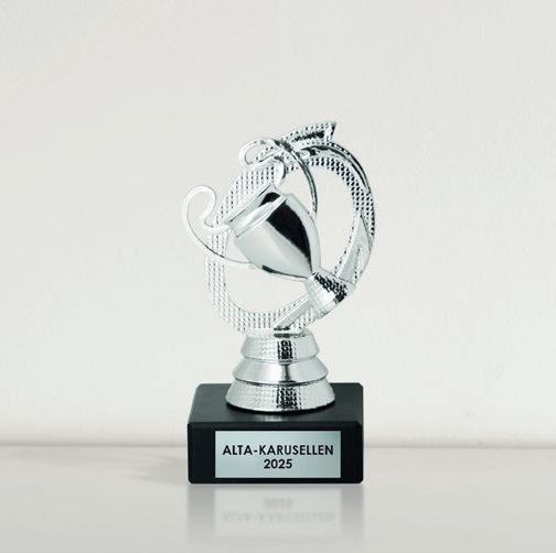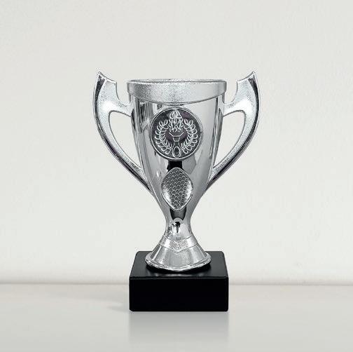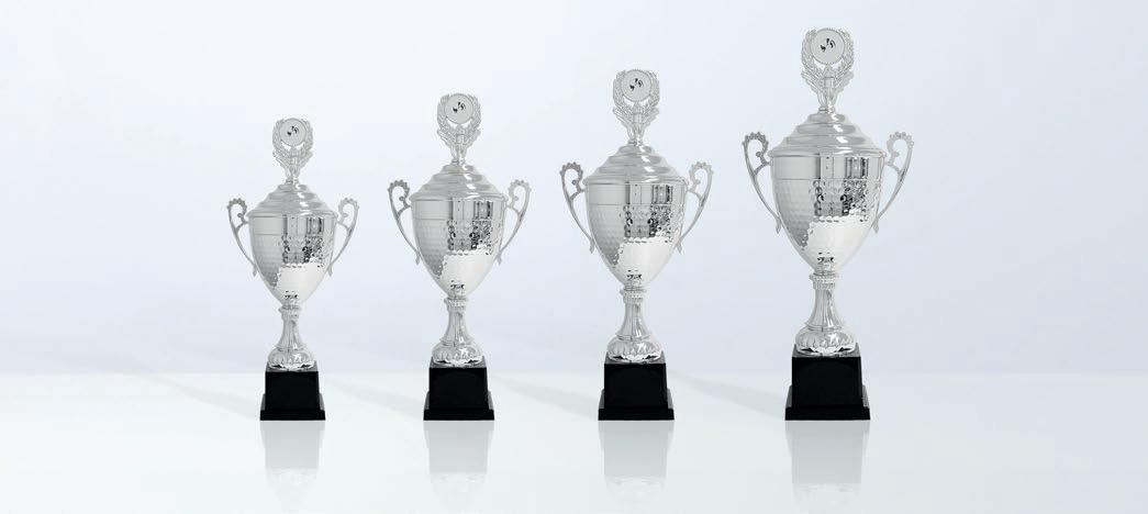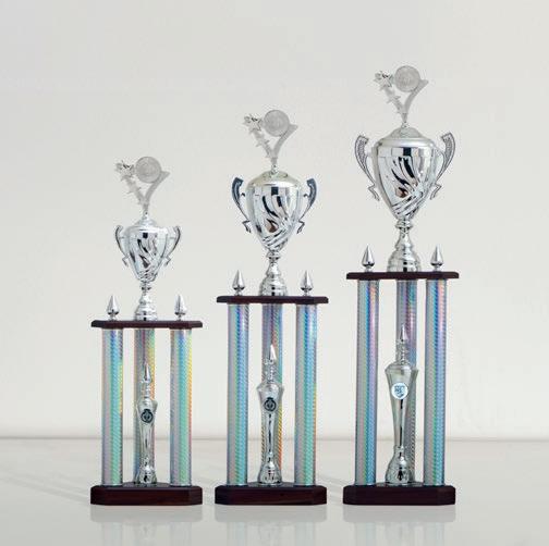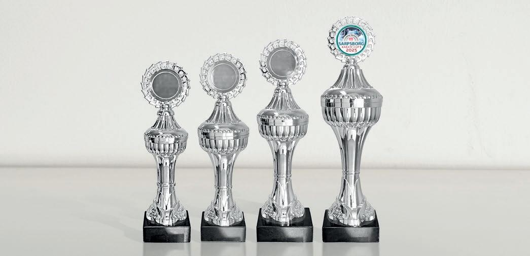 Pokalserie i kunststoff. Plass til sentermerke (Ø:25 mm) og/eller etikett eller skilt på sokkel.