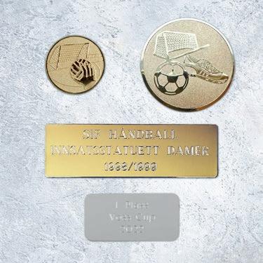 Medaljer laget spesifikt for en idrett har ikke plass til egen dekor på forsiden. Du kan likevel gjøre medaljen unik ved å gravere eller montere etiketter på baksiden.