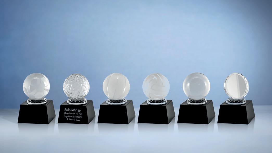 Glasstrofeèr Medaljer Treplaketter Rosetter Merking