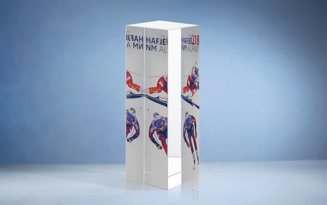 Eksklusiv troféserie med finish i matt sateng og børstet nikkel. Plexiglass med plass til valgfritt motiv. Plexiglasset kan UV-printes eller lasergraveres.