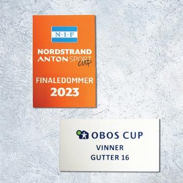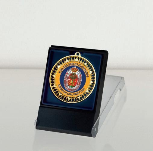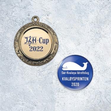 Medaljer er “hot“. Alle liker å få det. Vi har medaljer med standard motiv eller plass for eget motiv. Medaljebånd også kan være med standard eller eget motiv. Som en mulighet kan vi digitaltrykke på hvite medaljebånd.