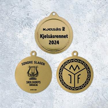 Stor medalje Ø: 50 mm. i gull, sølv og bronsjefinish. Plass til dekor Ø: 25 mm.