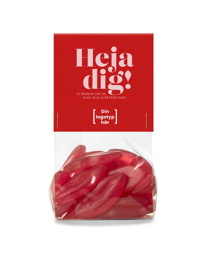 Den perfekta gåvan att ställa fram på bordet eller skylta med i giveaway-påsen. I vår snygga cellofanpåse kan mottagaren se det goda innehållet så som glimrande chokladhjärtan eller söta sockrade hjärtan. Samtidigt finns det gott om tryckyta för en hälsning till dess mottagare. Välj ett av våra standardmotiv där tryck av er logotyp och hälsning ingår eller designa ett eget motiv unikt för ert företag.