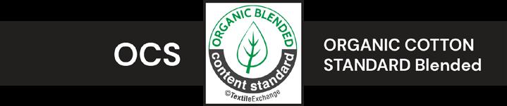 • OCS Blended - certified organic cotton (CERES-1725) – for products that have at least 5% organic content, mixed with conventional fibres.