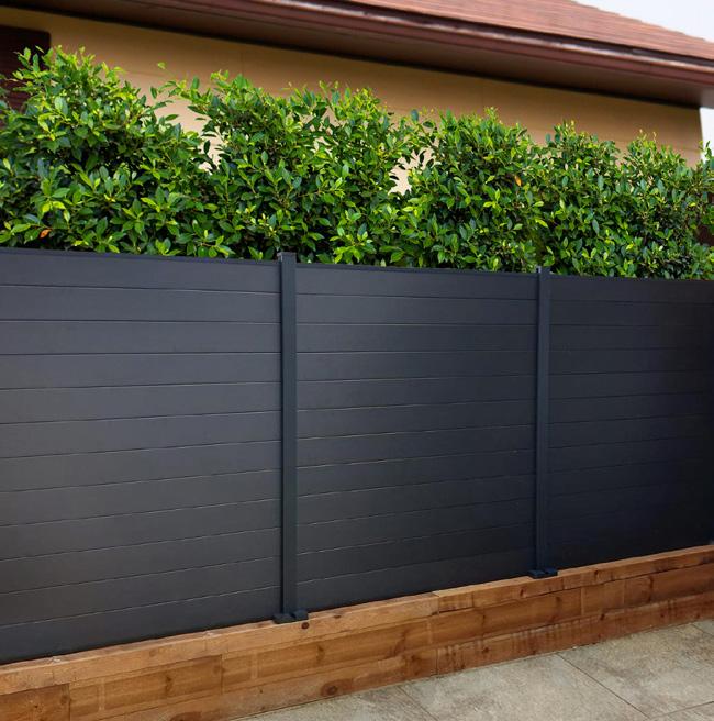 handy hint: composite fencing panels are also simple to install into concrete fencing posts when used with concrete post spacer trims.