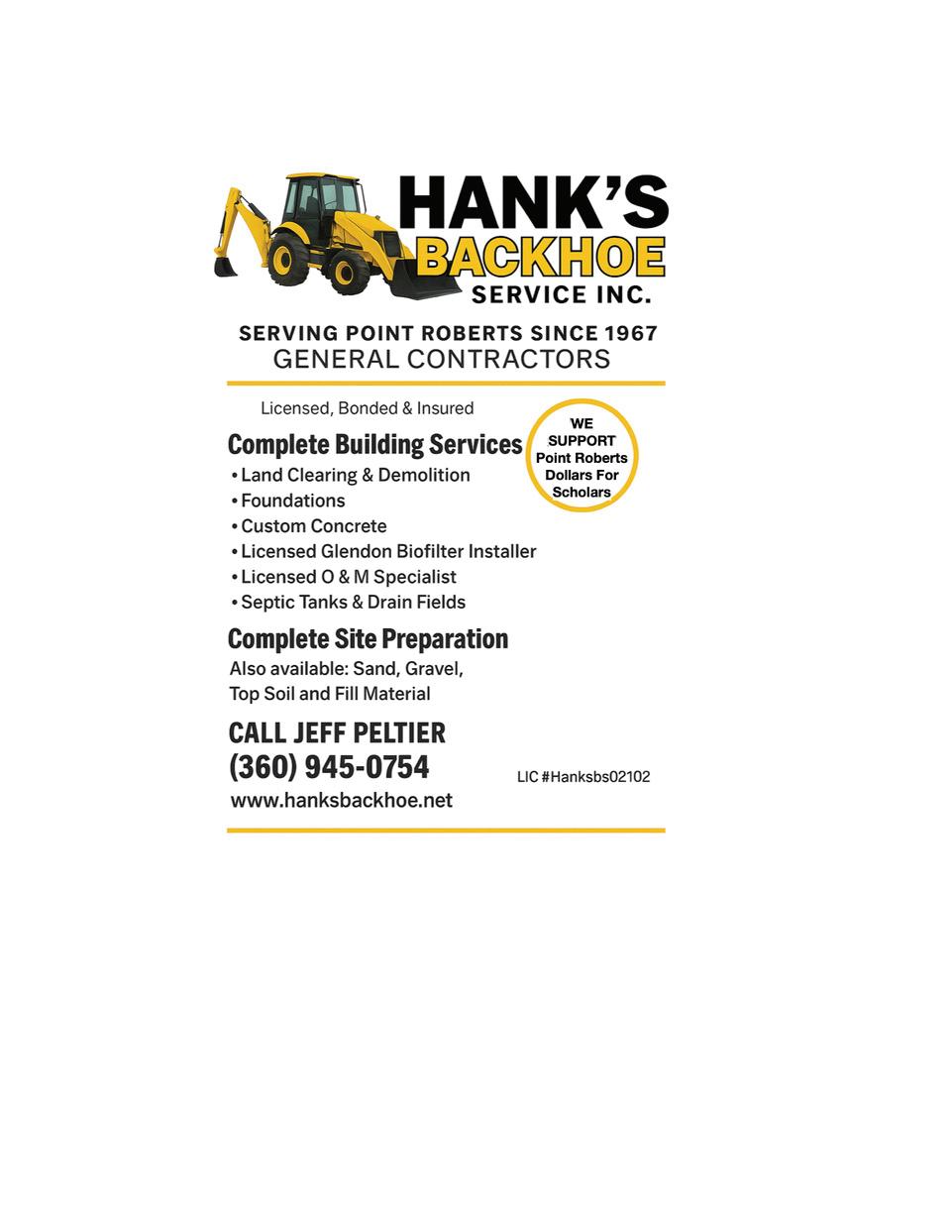 Point Roberts Chamber of Commerce AGM and Social: Thursday, November 13, 5:30 p.m., Pier Restaurant, 713 Simundson Drive. Join us for an informative and fun evening. Learn about the chamber of commerce and plans for 2026. Refreshments will be served. RSVP by Monday, November 10. Info: info@pointrobertschamberofcommerce.com.