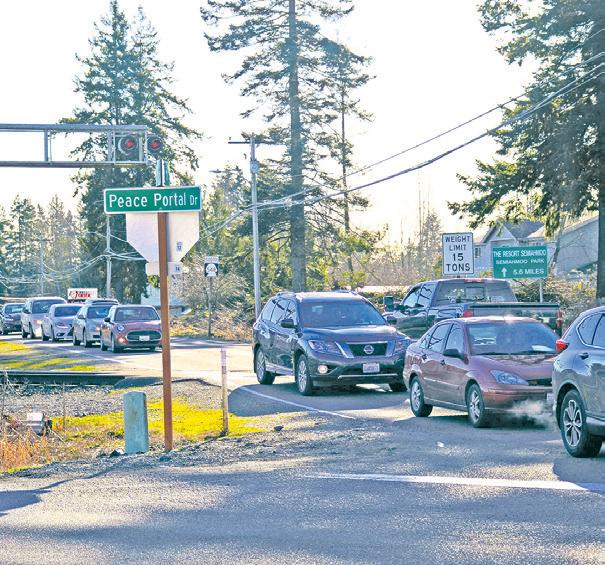 The Bell Road and Peace Portal Drive intersection, which connects downtown Blaine to Birch Bay and Semiahmoo and offers access to I-5, causes delays for many commuters during rush hour and when a train is present. The angled street approach to the four-way stop often leaves drivers confused as to who has the right-of-way.