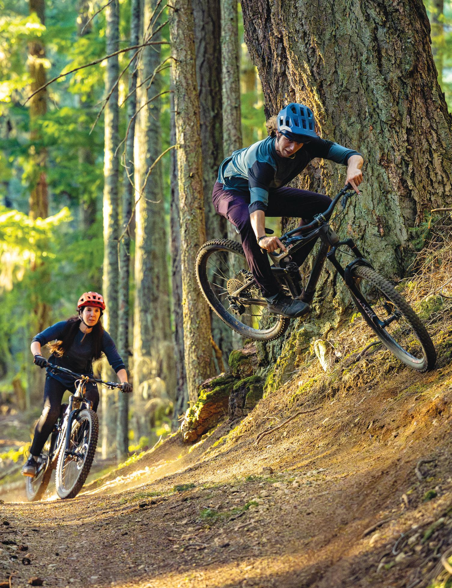 Spencer Arps and Callie Waldschmidt mountain biking on Orcas Island, Washington.
