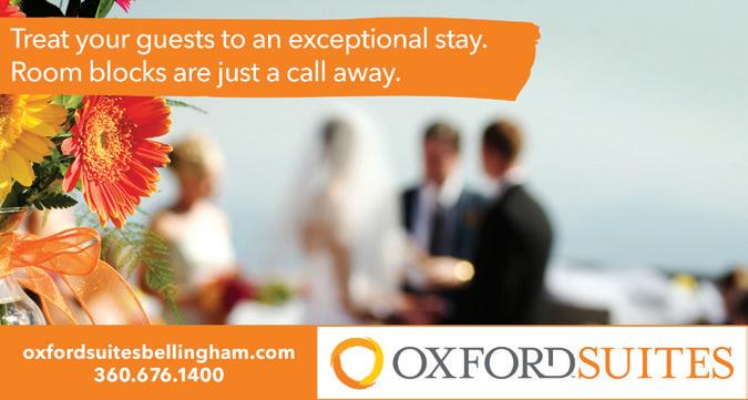 1 Bellwether Way, Bellingham 360/392-3100 hotelbellwether.com weddings@hotelbellwether.com Noted as the most scenic wedding destination in the Pacific Northwest, Hotel Bellwether offers luxurious accommodations and first-class amenities. Indoor & outdoor event space for 10 to 400 guests in our Grand Ballroom. 66 guest rooms, including the magical three-story Lighthouse Suite. Full-service catering and hotel staff to cater to your every whim! p. 39