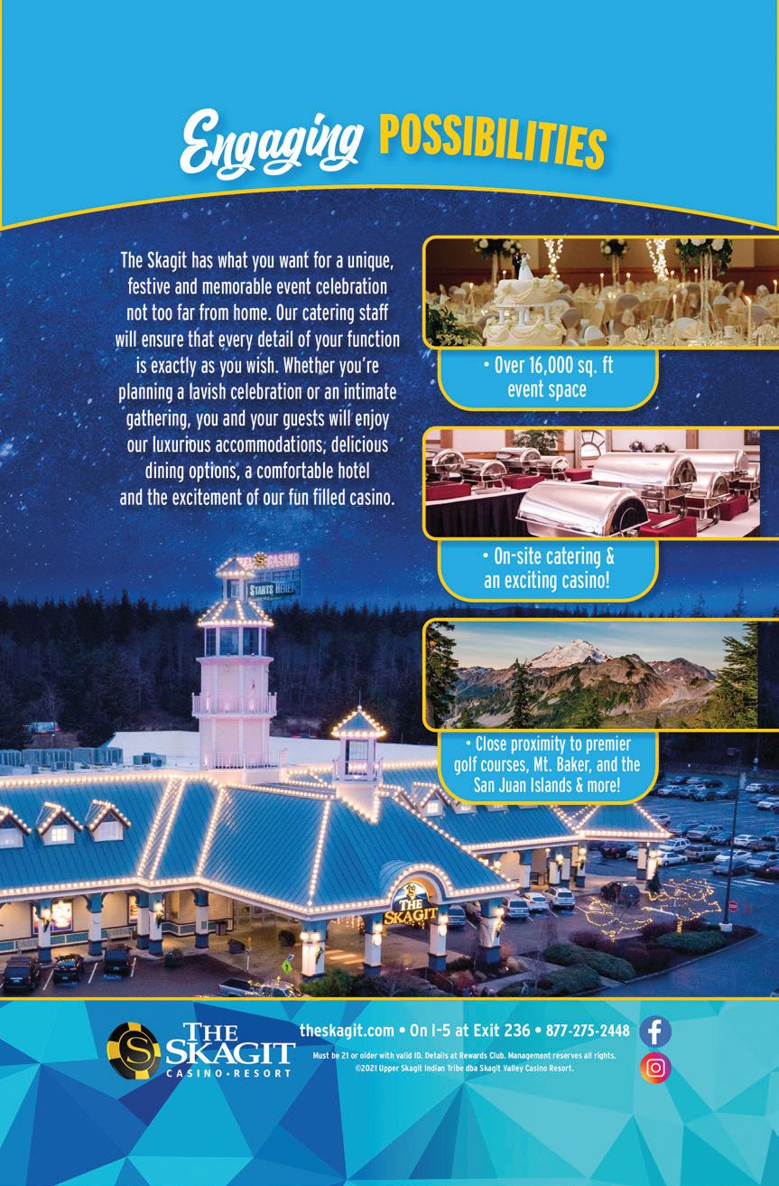 Just outside Bellingham, Samson Estates offers a stunning event pavilion (300 capacity) surrounded by acres of lush, manicured lawn and botanical gardens. Discount offered on our international, award winning wine for on/off site events. p. 5