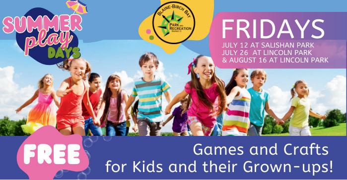 Picnic in the Playground: Saturday, May 18, 11 a.m.–2 p.m., Blaine Marine Park. Free outdoor play, games, and crafts for kids of all ages. Free mini rugby clinic. Food and Kona Ice available for purchase. Free shuttle to the Spring Block Party in downtown Blaine. Info: bbbparkandrec.org.