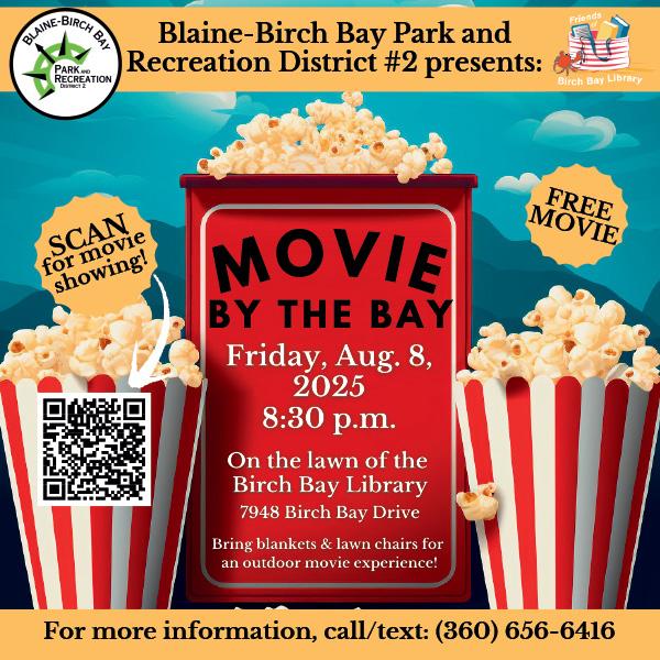 Movie at the Bay: Friday, August 8, 8:30 p.m., Birch Bay Vogt Library, 7948 Birch Bay Drive. A movie night under the stars on the lawn. Bring blankets, lawn chairs and favorite snacks for a relaxed evening with the community. Food available thanks to Friends of Birch Bay Library. Info: bbbparkandrec.org.