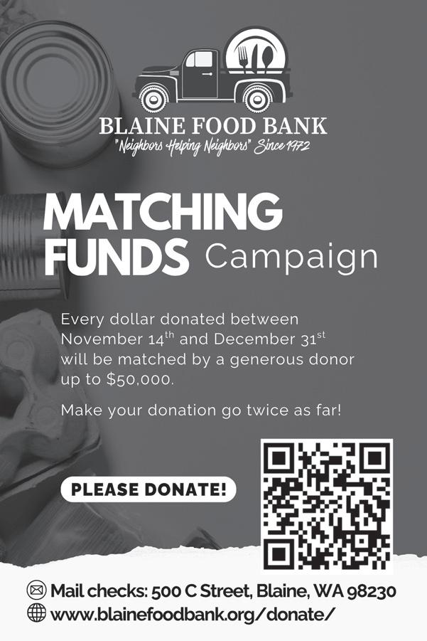 Puzzles and Pastries: Monday, November 17, 4–6 p.m., Blaine Library, 610 3rd Street. All puzzle enjoyers are welcome to come in and spend time solving alongside others the 1st and 3rd Monday of the month. Info: wcls.org. Community Dinner: Thursday, November 20, 5:30–7 p.m., Blaine Community Center, 763 G Street. Enjoy a turkey dinner, community and connections over dinner. Free, with donations accepted. Info: call or text 360/656-6416. Birch Bay Incorporation Annual General Meeting: Thursday, November 20, 6 p.m., North Bay Community Church, 4895 Birch Bay-Lynden Road. Connect and reflect on committees, updates on the feasibility study and elections. Info: wearebirchbay.com.