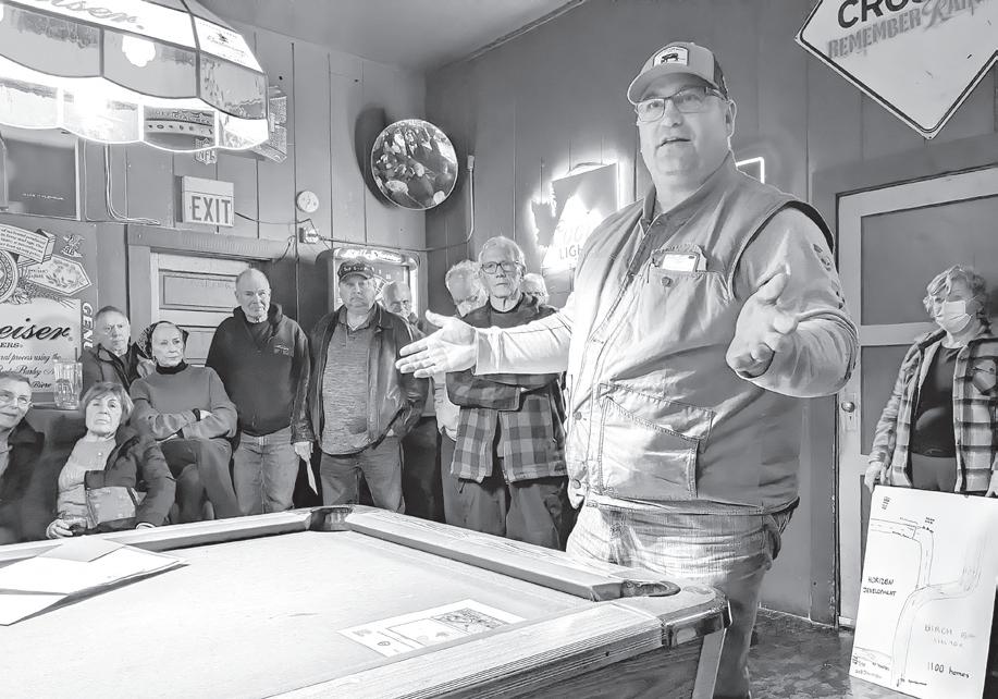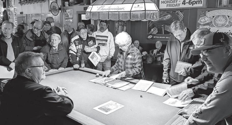 Elenbaas scheduled a public meeting at Tony’s Tavern in Custer on March 2, thinking only a few people would attend. Instead, over 50 people gathered under brightly lit Coors Light and Budweiser signs and scanned county documents laid out on a pool table. Public works engineer Jim Karcher and public works special programs manager Roland Middleton were in attendance.