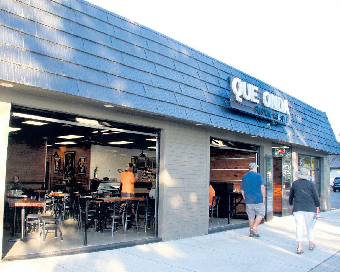 to become Que Onda, their first brickand-mortar restaurant. The remodeled space has garage doors at the front of the building that open during nice weather.