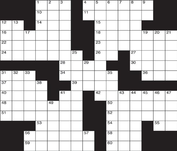 ACROSS 1. Small Eurasian deer 4. Irish county 10. A major division of geological time 11. Broadway actor Lane 12. Canadian province 14. It causes fainting (abbr.) 15. Two 16. A notable one is blue 18. Utter repeatedly 22. Rings 23. Sullies 24. Occurs 26. Publicity 27. Near 28. Tools of a trade 30. Offer in good faith 31. “American Idol” network 34. Garments 36. Soviet Socialist Republic 37. Retired NFL DC Dean 39. Hot meal 40. A type of gin 41. Percussion