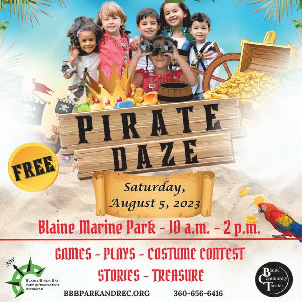 Pirate Daze: Saturday, August 5, 10 a.m.–2 p.m., Blaine Marine Park. Games, mermaid photo ops, pirate parade and costume contest, food, story telling, treasure hunts, battalion water battle, Blaine Community Theater water balloon play and more. Sponsored by Blaine-Birch Bay Park and Recreation. Info: bbbparkandrec.org.