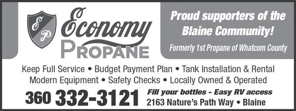 Blaine Food Bank: 500 C Street. Open Mondays 9 a.m.–noon, Wednesdays 5–7 p.m., and Fridays 9 a.m.–noon. Info:360/3326350 or Info@blainefoodbank.org.
