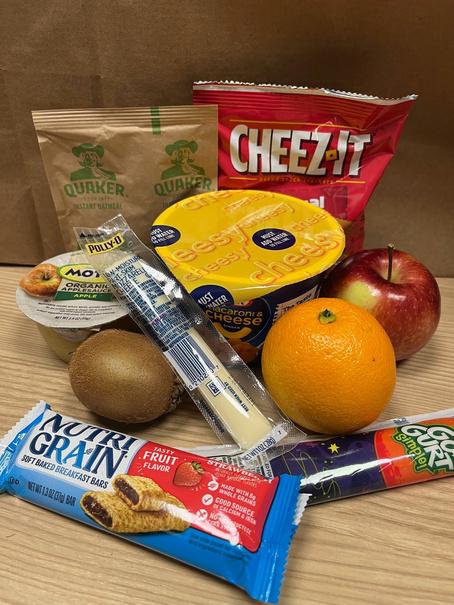Typical items in a Thrive Weekend Snack Bag can be seen in the photo to the right