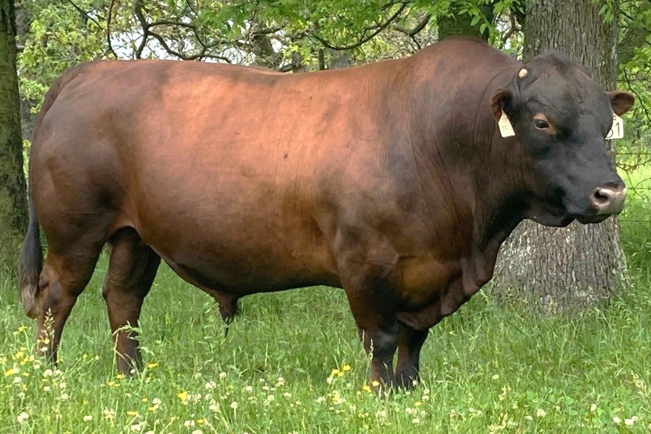 El Jefe was the leadoff South Poll bull in our 2023 Texas Sale. He is out of a six-year-old cow with a perfect udder. El Jefe had impressive 5-star ratings for masculinity, thickness, overall rating, hair coat and disposition. With a 63-pound birth weight and a birth weight ratio of 106, we think he will prove to have superb calving ease. El Jefe is co-owned with Ozark Hills Genetics in Missouri.