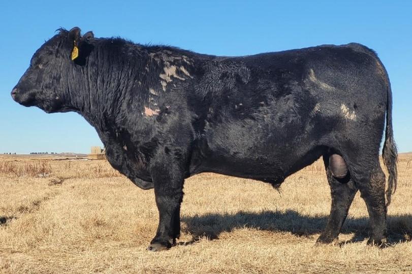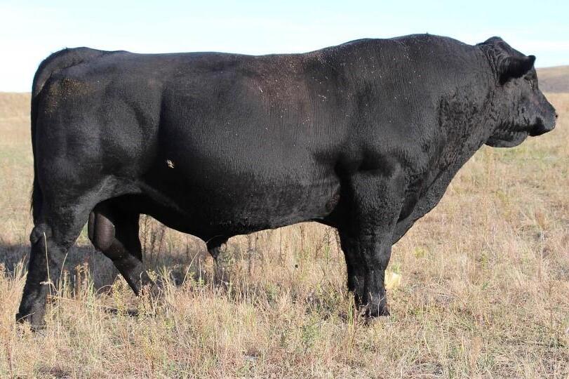 Hayden is somewhat of an outcross to our program. He is a grandson of Lodge of Wye, who was born in 1963 (61 years ago). He seems to be the complete package. Hayden has proven to be an udder improver in the PCC program. He is a 5-star calving ease bull with a birth weight EPD in the top 5% of the Angus breed. He is an extremely low-maintenance bull with an energy EPD in the top 1% of the breed. Co-owned with Seven Spades Cattle Company in Colorado and Flying S Ranch in Kansas