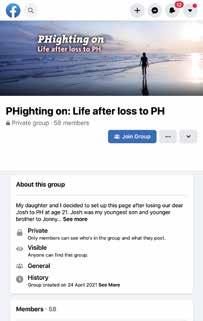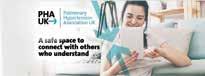 Our private Facebook groups are a valuable source of support and advice from people who truly understand. Each group has a strict screening process to ensure those requesting to join are genuine, so you can be confident of privacy. They are safe spaces to talk to other people with similar lived experiences. PHA UK Official Facebook group A very active forum, with almost 2,500 members. Join at www.bit.ly/OfficialPHAUKFacebookGroup PH Parents UK This group has been set up independently of the PHA UK and is run by a collection of parents and guardians. Join at PHA UK Official Carers Group This forum is exclusively for family members, loved ones, and anyone who provides care or support for someone with pulmonary hypertension. Join at There are people [with PH] “Read everything your hospital gives you.” Chris “To me, being a ‘phighter’ means having the strength to find every opportunity to live my life to the full, in spite of my physical restrictions.” Jane www.phauk.org Connect with others online “Try not to be scared. The specialist team caring for you are amazing, and mine have been looking after me for 19 years now.” Christopher “Keep going and stay strong. No day is the same – so if you have a bad day, better days will follow.” Lauren “Listen to your own body. Nobody knows it better then you and it will tell you when something is wrong.” Paula “Communication isabigthing.Talkto someoneyoulove.” Lou Words wisdomof Advice from people living with hypertensionpulmonary Hear from the experts by lived experience NEW LEAFLET!
