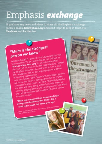 Emphasis exchange If you have any news and views to share via the Emphasis exchange please e-mail editor@phauk.org and don’t forget to keep in touch via Facebook and Twitter too.