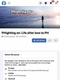 This group was set up by PHA UK members with our support. It is a safe space for families and friends to support each other, share their experiences, feelings and memories – and connect with others that have experienced loss due to PH. Join here: www.facebook.com/groups/215307796620821