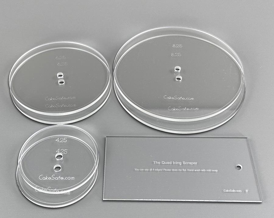 Rings and mono boards are well matched for size, so you can create masterpieces! Single serving pastry boards with grab tabs.