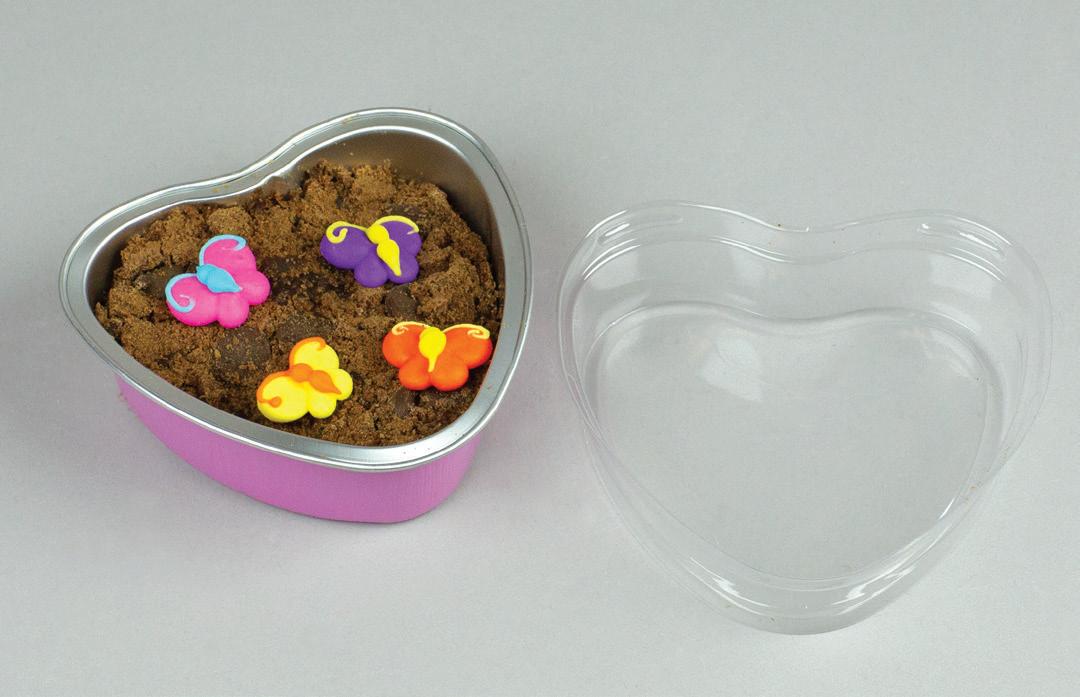 Mini Heart Shaped Foil Pan W/ Plastic Lid - Pink